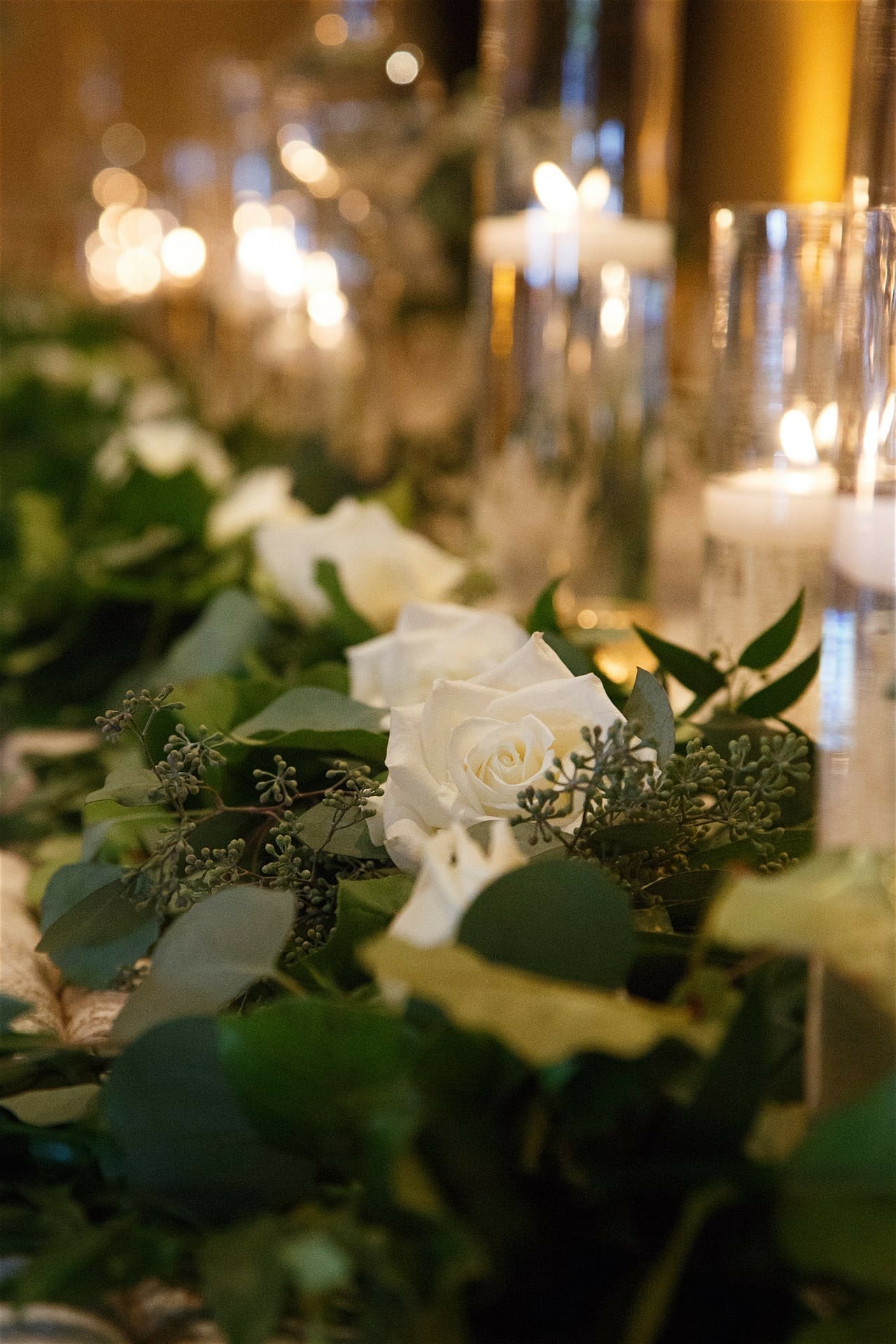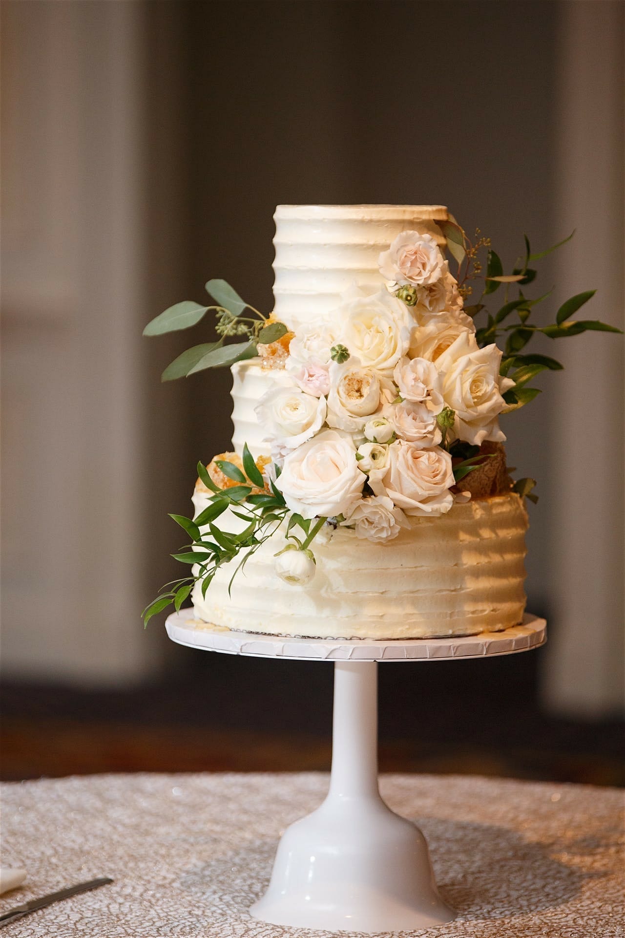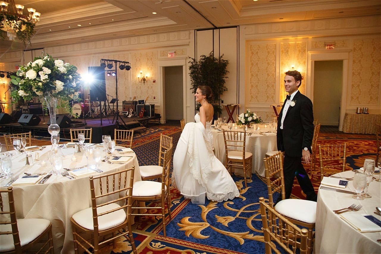 This wedding hit the mark on all five senses: the WaDuke’s delicious southern stations that encouraged guests to mingle, to the texture in the linens, the sound of the band, the glow of the lighting, and the smell of eucalyptus that filled the room – it was all so dreamy! Speaking of dreamy, Diana and Corley’s greenery dreams come true on that August day!! Diana decided a few weeks before the wedding that she wanted to add a touch of something special to surprise her soon-to-be husband and the perfect way was in the plants. With a degree in biology, Corley loves plants, so what a better way to nod to him than to dec the chandeliers out in greenery and flowers?? This was something they had never dome at the Washington Duke before, so it was so fun to come up with and see brought to life!