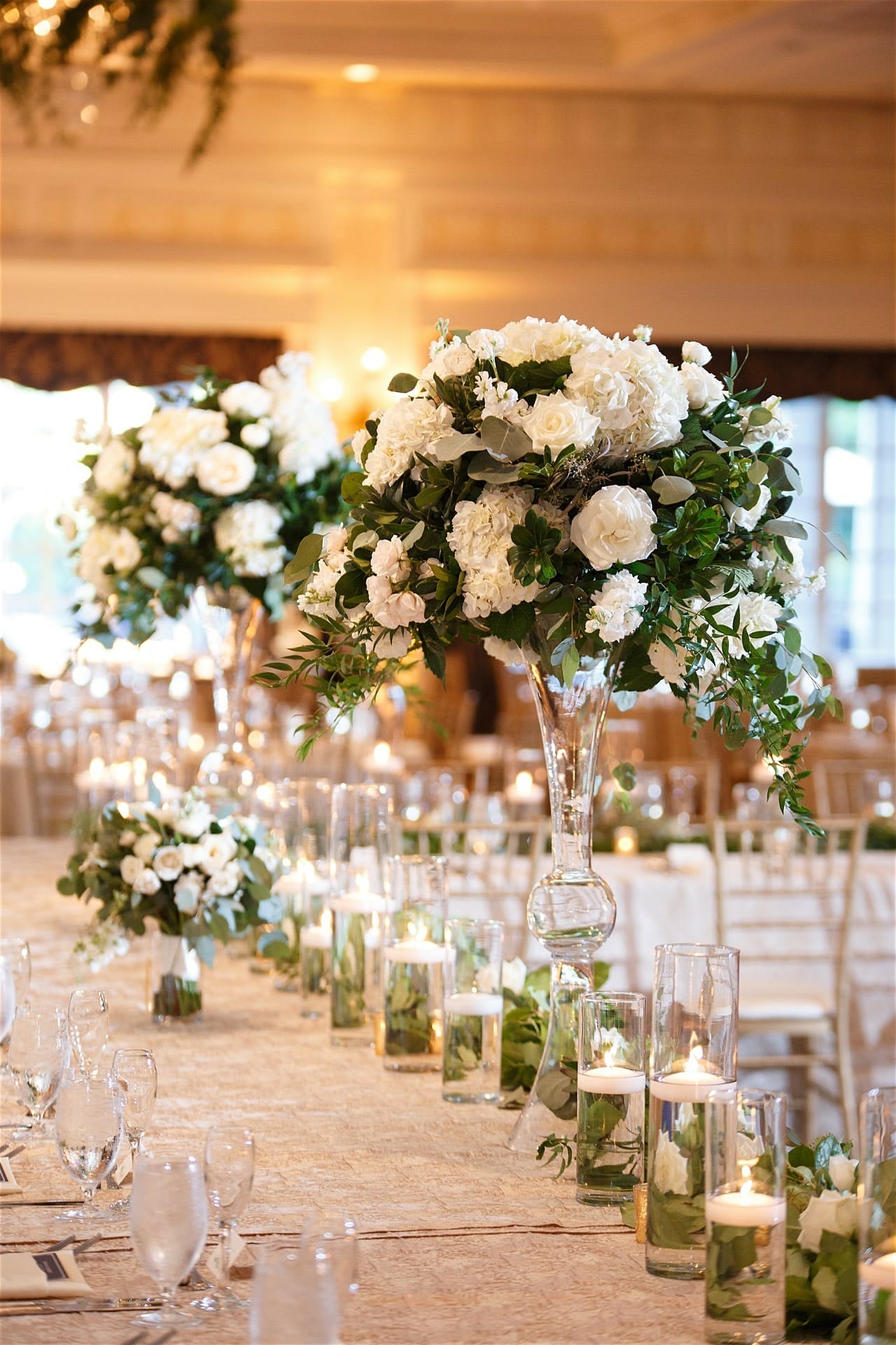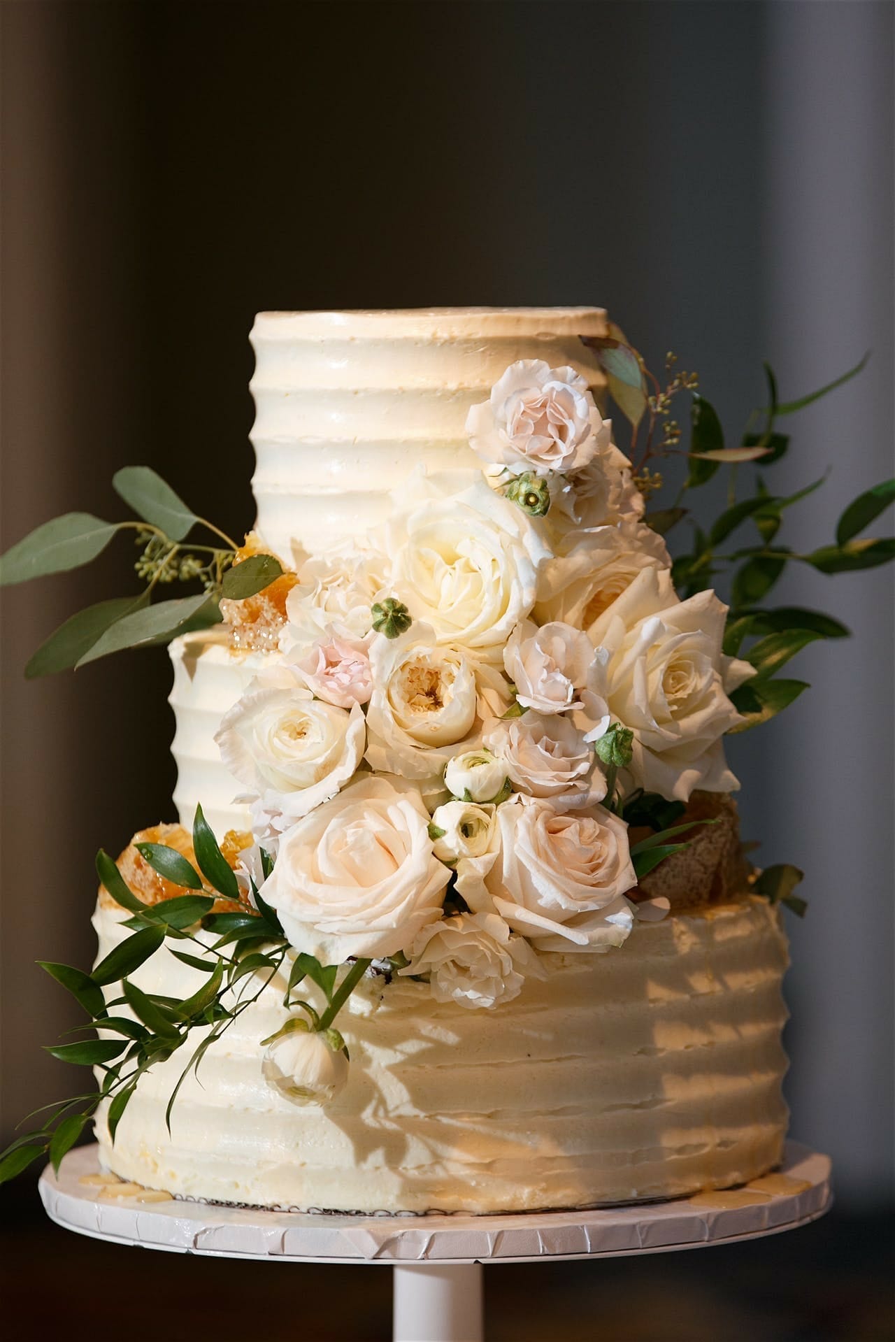 Diana and Corley live in Atlanta so we scheduled meetings such as engagement sessions, tastings, and design meetings strategically, but had a blast planning everything else from afar! Perhaps one of my favorite parts was creating a unique layout that lent it self to showcasing the beautiful floral details we dreamed up! Diana’s taste was classic and elegant, but she wanted to incorporate some fun twists that added even more personality to this special day, like all white bridesmaids dresses (which were so fab) with pops of color in their bouquets, incorporating their nicknames into their guests welcome bags, and honeycomb dripping from their cake!
